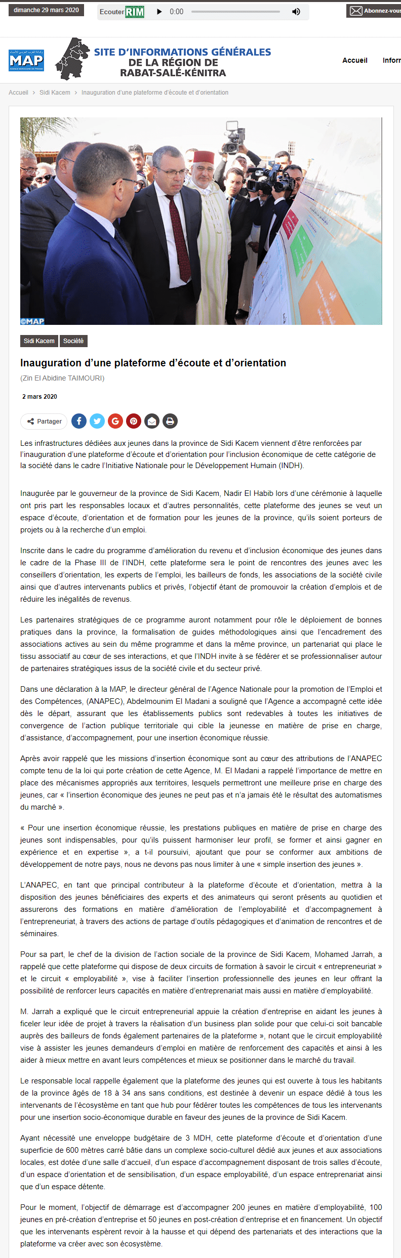 Inauguration d’une plateforme d’écoute et d’orientation