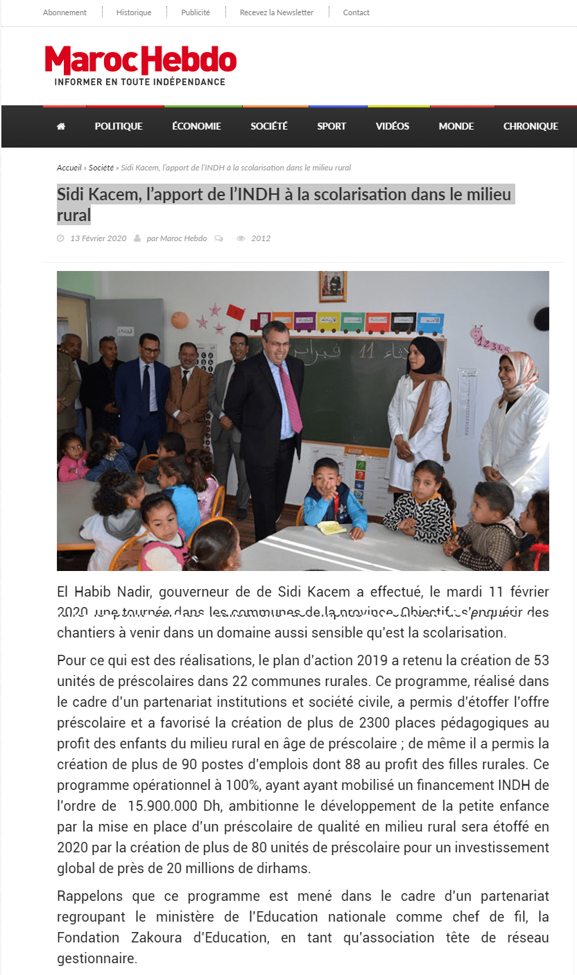 Sidi Kacem, l’apport de l’INDH à la scolarisation dans le milieu rural